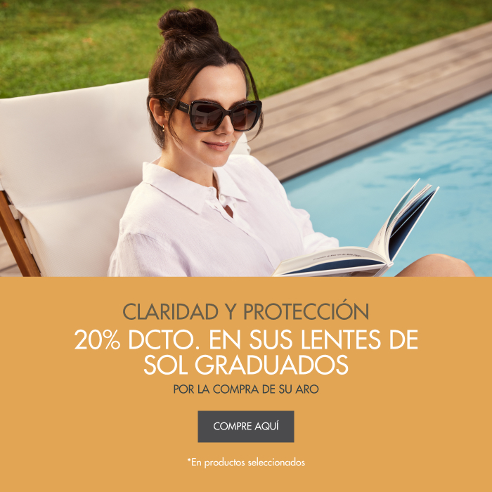 Obtenga hasta un 50% de descuento en sus aros oftálmicos o anteojos de sol seleccionados. Adicional, obtenga un 20% de descuento sus lentes graduados. Promoción válida en tiendas Ópticas Visión desde el 23 noviembre hasta el 01 de diciembre del 2025 y/o hasta agotar existencias. Descuento no aplica accesorios y/o líquidos. Promoción sujeta a disponibilidad de inventario. Los descuentos aplican sobre precio de etiqueta en monturas oftálmicas y gafas de sol, debidamente identificadas. Descuento no acumulable con otras ofertas, cupones, promociones y/o convenios vigentes. En caso de requerirse por parte del cliente devolución de dinero o cambio de producto se realizará sobre el valor efectivamente pagado y bajo previa verificación del producto. Promoción no aplica con las marcas Prada, Prada Sport, Cartier, Persol, Ray Ban, Oakley identificadas con etiqueta plateada.
